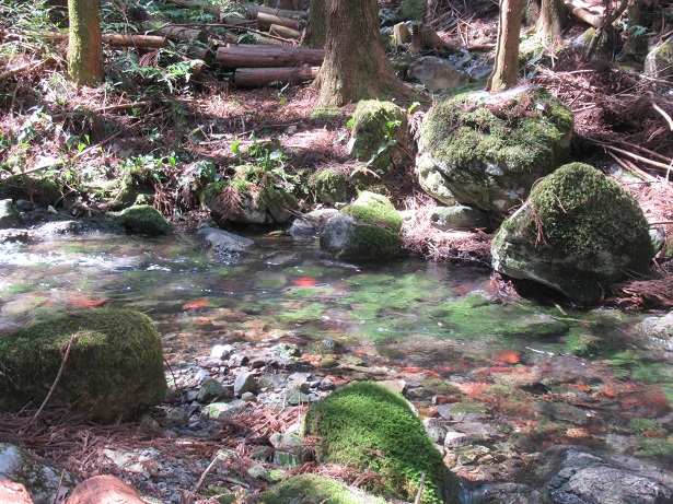 マイナスイオンいっぱいの道は、湧水池が終点です。