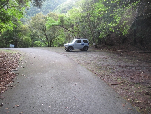 駐車場は上の写真の橋を越えて少し進んだところにあります。